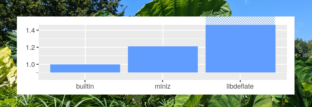I’m also hoping that the 1.8x lead that libdeflate commands further increases with the recent improvements landed in master due to advancements from DEFLATE performance discussions. And whenever those improvements land, I know I’ll be able to take advantage of them thanks to flexibility afforded by the zip crate.