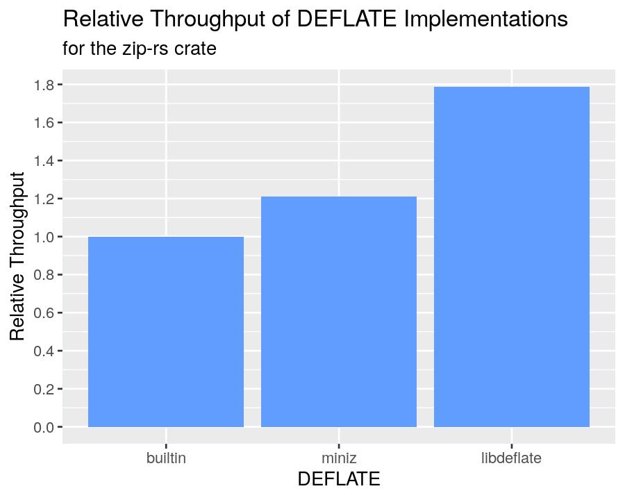 - miniz_oxide has 1.2x the throughput of the builtin DEFLATE for zip-rs